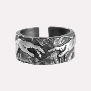 Inspirerad av den ikoniska beröringen mellan Gud och människa symboliserar Creation of Adam-ringen uppvaknande – ögonblicket där ande möter form. En design som speglar människans eviga strävan efter mening, skapande och något större än sig själv.