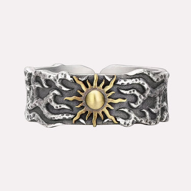 Inspirerad av Helios, den grekiska solguden som körde sin gyllene vagn över himlen, fångar denna noggrant utformade ring solens strålande kraft. I dess centrum lyser en strålande gyllene sol mot ett robust band som för tankarna till de eldiga strålarna som sprider sig utåt.