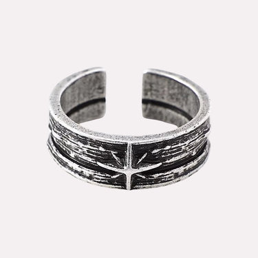 Ringens texturerade band påminner om kosmos oändliga vidder, medan den centrala stjärnan lyser som en symbol för klarhet och målmedvetenhet. Smidd av högkvalitativ metall-legering bär detta smycke stjärnornas eviga styrka, en talisman för dem som går sin egen väg men alltid hittar hem.
